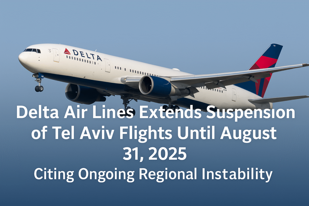 Delta Air Lines has extended its suspension of flights between Tel Aviv and New York JFK until August 31, 2025, due to continued Middle East security threats.