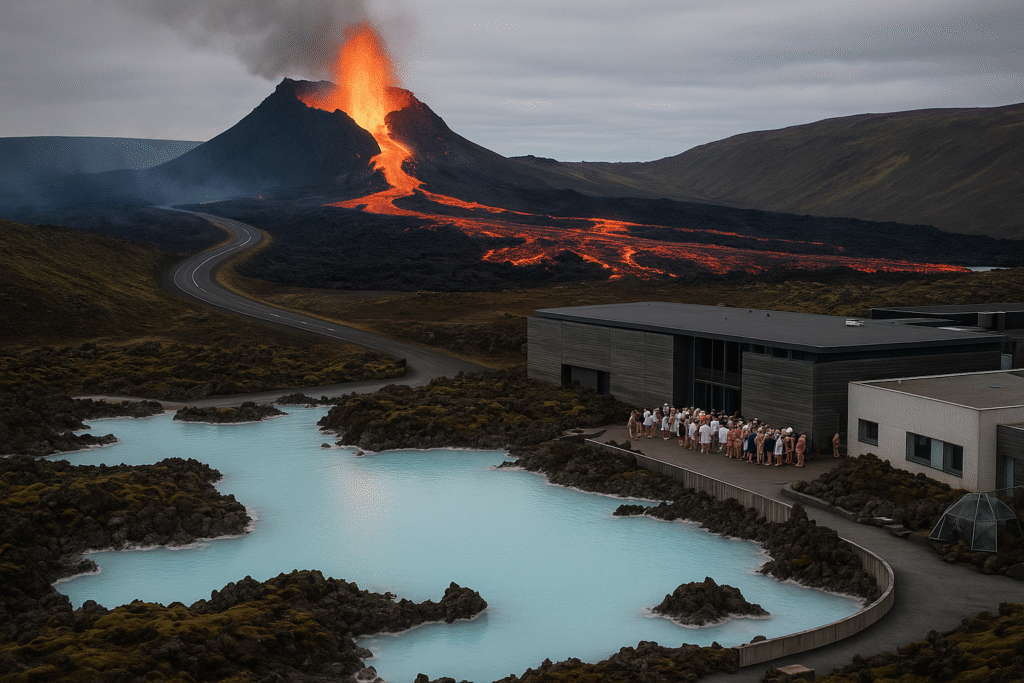 Iceland’s Sundhnúkur volcano forces Blue Lagoon evacuation, but air travel remains open. Airlines monitor lava flows as Reykjanes tourism adjusts cautiously.
