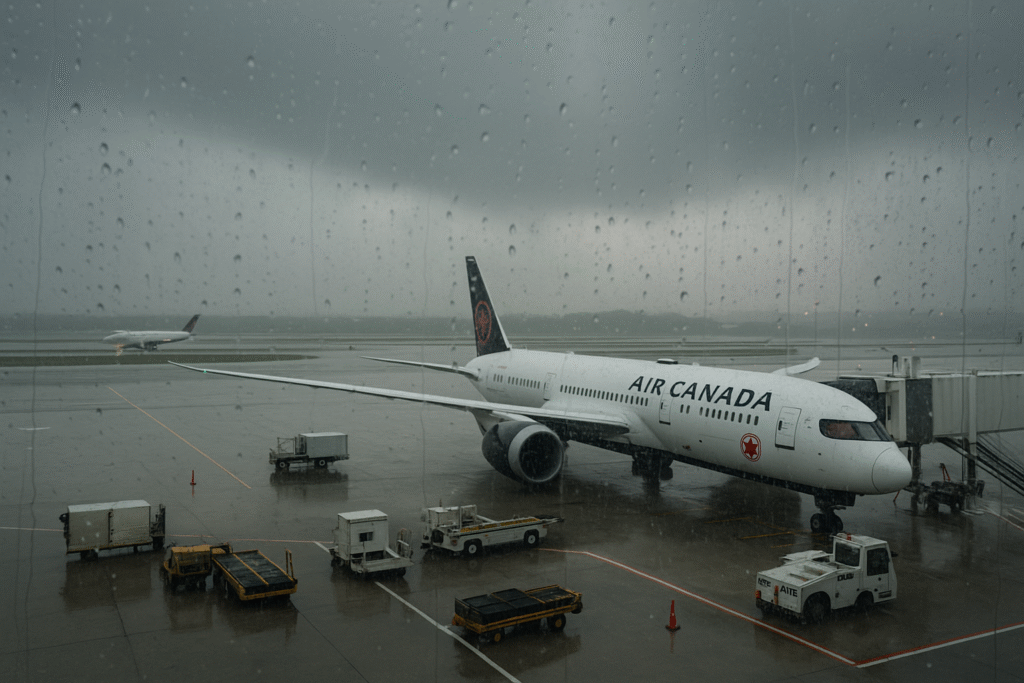 Over 300 flights were delayed or cancelled at Toronto Pearson, Montreal-Trudeau, Vancouver, and Calgary due to severe storms, crippling Canada’s air network.