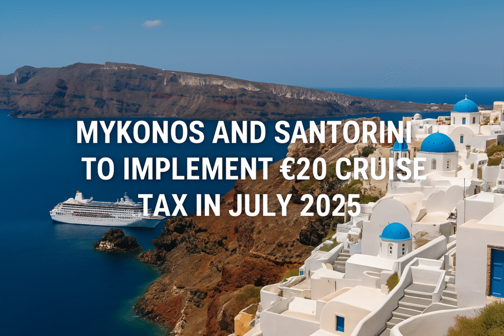 Greece will implement a €20 cruise passenger tax on Mykonos and Santorini from July 2025 to manage overtourism and fund sustainable infrastructure upgrades.