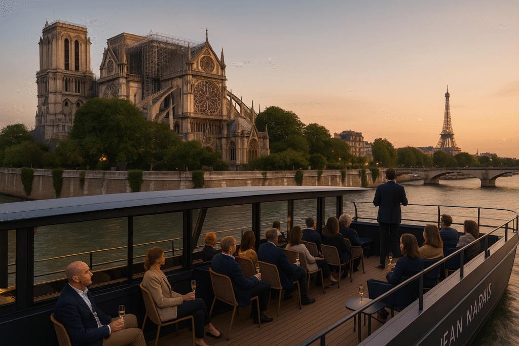 Discover Bateaux Parisiens’ exclusive Seine cruise from Quai de Montebello, offering rare views of Notre-Dame’s restoration with champagne, history, and elegance.